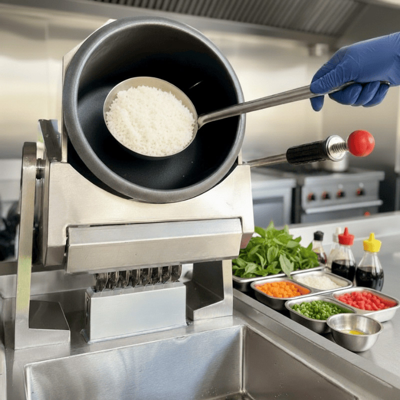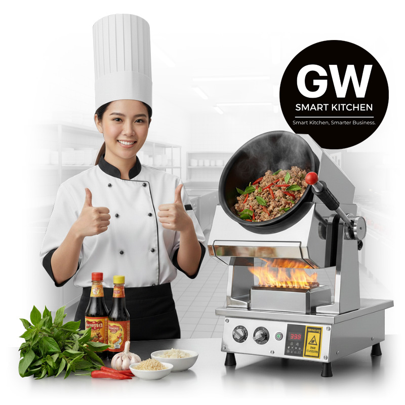 เครื่องผัดอาหารอัตโนมัติ ใช้งานง่ายใน 4 ขั้นตอน ใครก็ผัดได้ ด้วยเครื่องผัดอัตโนมัติ หมดปัญหาครัววุ่นวายจากการขาดแคลนแรงงานหรือเชฟประจำร้าน เพราะวันนี้คุณสามารถเปลี่ยนการทำอาหารที่ยุ่งยาก ให้กลายเป็นเรื่องง่ายได้ทันที ด้วยเครื่องผัดอัตโนมัติ ที่ออกแบบมาให้ทุกคนสามารถใช้งานได้จริง แม้ไม่เคยเข้าครัวมาก่อน ก็ผัดเมนูเด็ดได้อร่อยเหมือนเชฟมืออาชีพ เพียง 4 ขั้นตอนง่ายๆ