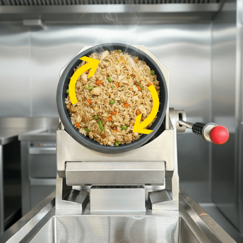 เครื่องผัดอัตโนมัติทำงานเหมือนกระทะที่มีเชฟผัด ความอร่อยของอาหารขึ้นอยู่กับสูตรและขั้นตอนการปรุงที่คุณกำหนดไว้